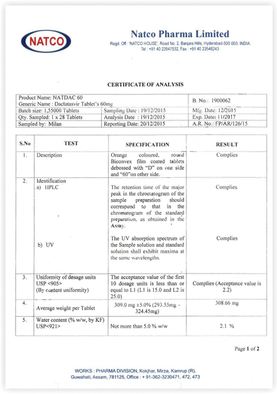 Hepcinat и Natdac Хит продаж | Индия Генотип 1, 2 | Natco | 8 900 р. Купить | 26 700 р. Купить | 1, 2 |